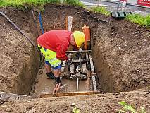 Ausgehend von einer Startgrube wird eine Sonde durch den Untergrund gepresst. Die gegenüber liegende Zielgrube erreicht sie sicher. Dank modernster Technologien ist ihre Position in jedem Moment bekannt. Der Kanal, den sie schafft, wird später ausgeweitet und für das Verlegen von Rohren und Leitungen vorbereitet.